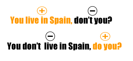 Intonasi dalam pelafalan question tags berpengaruh pada makna pertanyaannya. Jika question tags dilafalkan dengan nada yang agak tinggi atau naik, biasanya pembicara meminta konfirmasi karena ia agak kurang dengan informasi pada pernyataannya. Jika question tags dilafalkan dengan intonasi rendah biasanya pembicara sudah tahu kebenarannya tapi meminta persetujuan untuk mendukung pernyataannya. Pada kasus ini, question tags jadi berfungsi untuk menanyakan pertanyaan retoris di mana pembicara dan pendengar sudah sama-sama tahu kebenarannya.